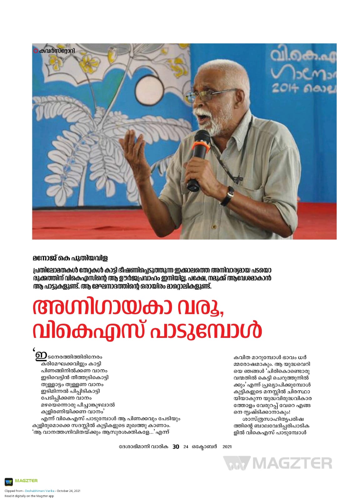 ലേഖനങ്ങളിൽ ഒതുങ്ങാത്തതാണ് ജനകീയാസൂത്രണത്തിന്റെ നേട്ടങ്ങൾ. ഭരണമാറ്റങ്ങൾ ഇതിന്റെ മുന്നേറ്റത്തിൽ ഏറ്റിറക്കങ്ങൾ സൃഷ്ടിച്ചു. ക്യാമ്പയിനിന്റെ ആവേശം നിലനിർത്താനാകാതെ വന്നിട്ടുണ്ട്. എങ്കിലും പ്രളയങ്ങളിലും കോവിഡിലുമൊക്കെ തുണയായ നമ്മുടെ തദ്ദേശഭരണസ്ഥാപനങ്ങളുടെ കാര്യക്ഷമമായ പ്രവർത്തനശേഷി ആ അനുഭവക്കരുത്താണ്. നവകേരളവും ജ്ഞാനസമൂഹവും ഡിജിറ്റൽ സമ്പദ്ഘടനയുമൊക്കെ സ്വപ്നം കാണുന്ന നമുക്ക് ആ മാതൃകയിൽനിന്നു പലതും എടുക്കാനുണ്ട്.
